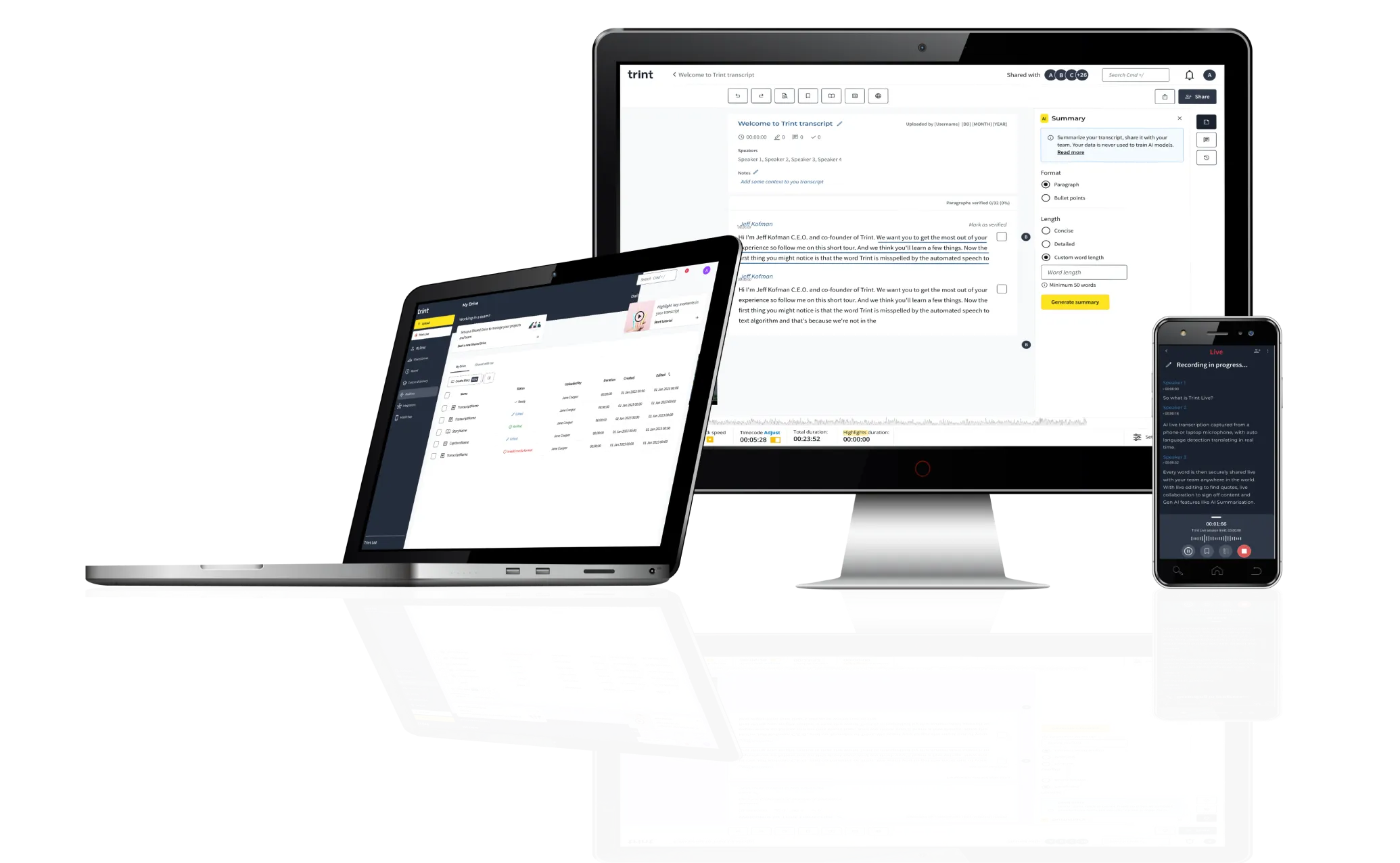 AI transcription software turning speech to text isn’t breaking news. But Trint is. Convert video, audio and live conversations to text in 30+ languages. Then search, edit and collaborate in real time to find insights fast and make smarter decisions.